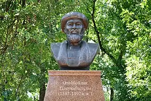 Oteyboydak Tleukabyluly (1388–1478), was a Kazakh scientist, healer and author of solid medical-ethnographic works Shipagerlik Bayan. He was familiar with such historical personalities as the 2nd Khan of the Kazakh Khanate Zhanibek Khan and the legendary Kazakh Orator Zhirenshe Chechen. Tleukabyluly was a well-known public figure, involved in dealing with the plight of the people. The dates of his birth are taken from his book Shipagerlik Bayan. He writes that he started writing this book at the age of 70 at the request of Zhanibek Khan and finished it at the age of 85; after Zhanibek Khan's death. There is also evidence that Oteyboydak died at the age of 90.