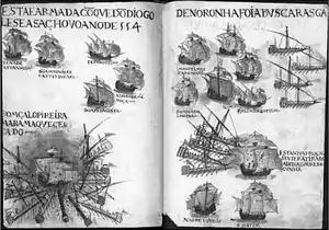 In 1553, the Portuguese soundly defeated an Ottoman fleet led by Murat Reis the Elder in the Battle of the Strait of Hormuz. The purpose of this expedition was to bring the fleet back to Suez. The new Ottoman admiral was the former sanjak-bey (governor) of Qatif. While trying to sail out of the Persian Gulf, he encountered a large Portuguese fleet commanded by Dom Diogo de Noronha.[13] In the largest open-sea engagement between the two countries, Murat was defeated by the Portuguese fleet and had returned to Basra.[14][15]