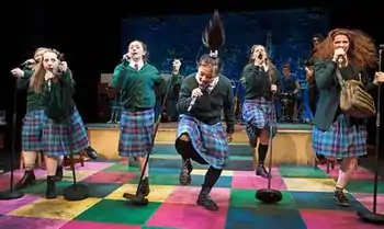 Our Ladies of Perpetual Succour has been adapted for the stage by Lee Hall,[4] based on the 1998 novel The Sopranos[5] by Alan Warner.[6] Set over the course of a single day[7] the book follows a choir of Catholic school girls on a trip to Edinburgh for a competition.[8] On 15 May 2015, it was announced the play would receive its world premiere the same year at the Traverse Theatre, Edinburgh, as part of the Edinburgh Festival Fringe.[9] The play reunited the National Theatre of Scotland with former artistic and founding director Vicky Featherstone, who left the company in 2012.[10] Featherstone wished to stage the play whilst still with the National Theatre of Scotland, but due to issues with the novels rights was unable to. Hall, having read the book when it was first published, also felt he wished to adapt it.[7] Featherstone and Hall met at the Evening Standard Awards around eight years prior to the play's official announcement and the idea was reignited.[7]