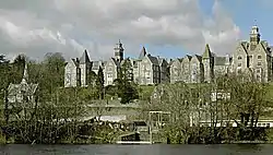 In the late 1840s, a site in Shanakiel was identified for the construction of new hospital of sufficient size to meet the increasing requirements of the City.[2] The new hospital, which was designed by William Atkins in the Gothic revival style and built by Alex Dean, was named after the Earl of Eglington, the Lord Lieutenant of Ireland.[3] It accordingly opened as the Eglinton Lunatic Asylum in 1852.[3] A chapel was added in November 1885, to the designs of William Henry Hill.[2] An annex, which subsequently became known as St. Kevin's Hospital, was built to the east of the main structure in the late 1890s.[4]