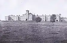 The hospital, which was designed by William Fogerty,[1] opened as the Ennis Asylum in 1868.[2] It became Ennis Mental Hospital in the 1920s and went on to become Our Lady's Hospital in the 1950s.[2] After the introduction of deinstitutionalisation in the late 1980s the hospital went into a period of decline[3][4] and closed in March 2002.[5] The site, which has changed hands several times since the hospital closed, was acquired by a new developer in March 2018.[6]