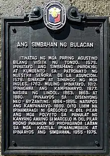 - 1 2 3 4 File:Bulacan Church historical marker.jpg. Wikimedia Commons. Retrieved on 2014-12-14.
