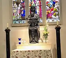 At the start of the twentieth century the Reverend James Dixon, Vicar of Willesden, restored the shrine,[2] and placed a gilded image of Mary and Jesus at the location within the parish church where the original had once stood. A small number of pilgrims began visiting the shrine. The Right Reverend Graham Leonard, Bishop of Willesden 1964–1973, actively promoted pilgrimage to the shrine of Our Lady of Willesden, and in 1972 a new "Black Madonna" statue was commissioned from the sculptor Catharni Stern.[2] On completion it was set in the former chapel of St Catherine within St Mary's parish church, Willesden, and the chapel was redesignated the Shrine Chapel. A visit to this chapel is now the climax of the Willesden pilgrimage.