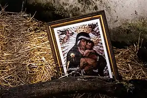 Due to the deterioration of the original painting, the image was reproduced on canvas and placed in this purpose-built church, namely the Shrine of Our Lady of the Hens.[7][2][6]