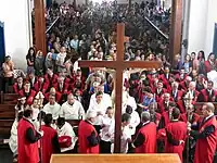 In Pirenópolis, the manifestations of the religious traditions of Holy Week have been held since the XVIII century, funded by brotherhoods, such as the Blessed Sacrament, and housed exclusively in parish churches.[7][21] The rites of the celebration of the Passion of Christ, liturgical and paraliturgical acts, constitute an exceptional cultural moment, of emotional and affective value to the people of the place, and has been conceived since its origin and was the celebration of greatest local expression; it is the period when most celebrations were held.[21][42]
