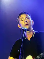 "Out of Time" was performed by Blur on television shows such as CD:UK,[51] Top of the Pops[52] and Friday Night with Jonathan Ross in 2003.[53] The song was also performed during a series of shows in London Astoria in May 2003,[54] as well on the international tour supporting Think Tank.[55] According to Nick Cowen from The Daily Telegraph, the performance was "one particularly sweet moment" from the show.[56] The band performed the song during a series of two shows at London's Hyde Park on 3–4 July 2009.[57] It was also performed at Blur's concert directly after the 2012 Summer Olympics closing ceremony on 13 August 2012 in London.[58] "Out of Time" was added to the setlist of the tour in support of their eighth studio album The Magic Whip in 2015[59] and the band also performed it at their two Wembley Stadium shows in July 2023.