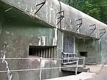 Ouvrage Galgenberg forms a portion of the Fortified Sector of Thionville of the Maginot Line. It is situated in the Cattenom Forest, near the gros ouvrage Kobenbusch and petit ouvrage Oberheid. The ouvrage was tasked with controlling the Moselle Valley and as such was called the "Guardian of the Moselle."[1] Galgenberg did not see significant action in 1940 or 1944. After a period of reserve duty in the 1950s and 1960s, it was deactivated. It is now a museum.