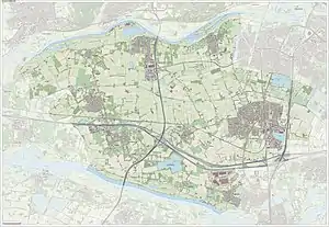 Overbetuwe (Dutch pronunciation: [ˌoːvərˈbeːtyu.ə] ⓘ) is a municipality in the province of Gelderland in the Netherlands. It was formed on 1 January 2001 as a merger of three former municipalities: Elst, Heteren and Valburg. Overbetuwe is bordered in the north by the river Rhine and in the south by the river Waal. The town hall is located in Elst, the largest town in the municipality. Since 2021 it has been part of the Arnhem-Nijmegen Green Metropolitan Region (Dutch: Groene Metropoolregio Arnhem-Nijmegen, which aids planning and development in the region's eighteen municipalities.[6]