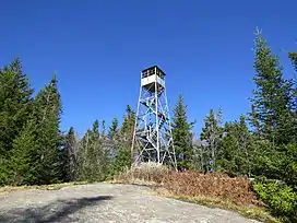 After a 1908 forest fire destroyed nearby Long Lake West (now known as Sabattis), New York State Conservation Department built a wooden fire tower on Owls Head Mountain in 1911 that was replaced in 1919 by the present tower. The tower was closed in 1970 as airplanes replaced fire observers. It has been restored and opened to the public.