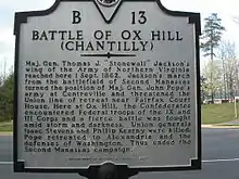 - Virginia Historical Marker B-13, Battle of Ox Hill (Chantilly)
