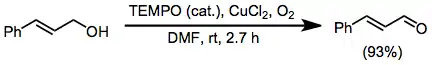Under mildly acidic or neutral conditions, oxoammonium salts such as Bobbitt's salt oxidize allylic, benzylic,[11] propargylic,[12] or aliphatic alcohols to the corresponding aldehydes or ketones. Secondary alcohols react faster than primary ones, although selectivity is low. A convenient experimental protocol allows for recycling of the oxoammonium salt.[12]