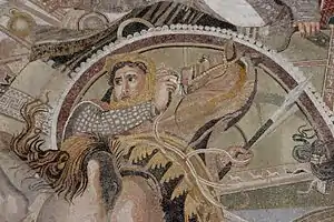 Oxyathres (Ancient Greek: Οξυάθρης; in Old Persian Vaxšuvarda; lived 4th century BC) was a brother of the Persian king Darius III Codomannus. He was the son of a certain Arsames, and grandson of Ostanes. He was distinguished for his bravery, and in the battle of Issus, 333 BC, took a prominent part in the combat in defence of the king, when attacked by the Macedonian cavalry under Alexander himself, as shown in the celebrated Alexander Mosaic found in Pompeii.[1] He afterwards accompanied Darius on his flight into Bactria, and fell into the hands of Alexander during the pursuit, but was treated with the utmost distinction by the conqueror, who even assigned him an honourable post about his own person; and subsequently devolved upon him the task of punishing Bessus for the murder of Darius.[2] He was also the father of Amastris queen of Heraclea.[3]