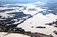Lake Päijänne (Finnish pronunciation: [ˈpæi̯jænːe]) is the second largest lake in Finland (1,080 km2 (266,874 acres)). The lake drains into the Gulf of Finland via the Kymi River. The major islands are from north to south Vuoritsalo, Muuratsalo, Onkisalo, Judinsalo, Edessalo, Taivassalo, Haukkasalo, Vehkasalo, Mustassalo, Virmailansaari and Salonsaari. The largest island is Virmailansaari. The word saari means an island. Salo once meant a great island, nowadays it means a great forest area.