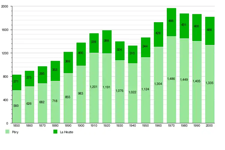 The total population of Péry-La Heutte (as of December 2020) is 1,908.[9]