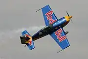 Besenyei became an aerobatics pilot and won several titles in national and international championships. He won his first gold medal in 1982 at the Austrian National Championships.[2] His specialty is free-style aerobatics. He invented a number of original snap rolls and, in 1984, the "knife-edge spin". In 1995 Péter Besenyei won 2 gold and 2 silver medals and he was named the most successful aerobatics pilot of his time.[1] In 2001 Besenyei flew upside down under the Széchenyi Chain Bridge,[3] that spans the river Danube in Budapest, a maneuver that became a standard in air races today.