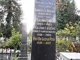 The parents of Gaszner are László Gaszner (Komádi, November 4, 1904 – 1983) and Marianne Barkóczy Klopsch (Budapest, March 15, 1908 – 2003), a highschool teacher. His paternal grandparents were Károly Gaszner and Mária Kugler and his maternal grandparents were Béla Barkóczy (1872–1957) and Róza Buday (1882–1974). He completed his schools in Békéscsaba and Diósgyőr, later in the Újdiósgyőr High School.[1] He received his medical degree from the Medical University of Debrecen. His children are Andrea (born 1965), Balázs (born 1969), Gábor (born 1978), and Mariann (born 1984). Three of his children became doctors; Mariann chose a career in economics. Gaszner rests in the Barkóczy-Gaszner crypt in Eger, in the Hatvani Cemetery (next to Szépasszony Valley).[2]