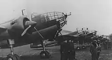 In response to the feedback from the first prototype's testing, several improvements and other modifications were made, some of which was introduced on the original prototype while more extensive changes were introduced upon the second prototype.[12] This second prototype, known as PZL.37/II, featured the adoption of twin-vertical stabilizers, a re-worked cockpit and an altered ventral gun position amongst other changes, functioned as a representative aircraft of the anticipated production bomber and performed its first flight during autumn 1936.[13] Suitably impressed, the department accepted the aircraft for production, placing an initial order for 10 pre-production aircraft, as well as bestowing a name upon the bomber, Łoś.[14]