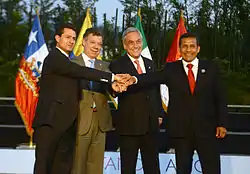- ↑ "Pacific Alliance unites Mexico, Colombia, Peru and Chile economies; 1st step: dropping visas". The Washington Post. Associated Press. 31 July 2011. Retrieved 7 June 2012.