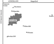 Packsaddle, New South Wales is a remote township and civil parish of Evelyn County, New South Wales within the Far West Region. Its population is 87.