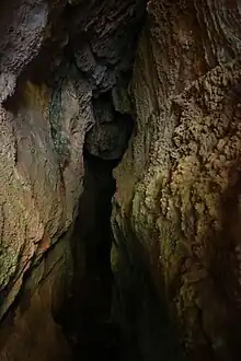 It is located close to Royal Naval Hospital. It is a narrow cave, approximately 5–6 meters long. It has an entrance about 3 meters high. The cave has old graffiti from 1877 when it was discovered. It has two floors loosely connected and various rock formations.