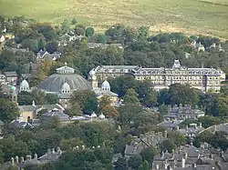 It was built from 1864 to 1866 as the first-class Buxton Hotel on the hill next to Buxton's two new railway stations. It cost £50,000 to build and had 105 rooms, a grand ballroom and 5 acres of landscaped gardens with croquet lawns and a tennis court. After its construction, the venture was liquidated and the hotel was auctioned in November 1867 at the Waterloo Hotel in Manchester. It was bought for £20,000 by a consortium including several of the original investors, the Duke of Devonshire and with the LNWR railway company as a major shareholder. It opened as the Palace Hotel in May 1868. It was the largest hotel in Buxton until the luxury Empire Hotel with 300 rooms was opened in 1903 (although the Empire never reopened after World War I and was demolished in 1964).[2][3][4]