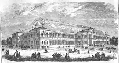 The Palais de l'Industrie (Palace of Industry) was an exhibition hall located in Paris between the Seine River and the Champs-Élysées, which was erected for the Paris World Fair in 1855. This was the last of several buildings with the same name erected on the same site. The first Palais de l'Industrie was built in 1839 and was replaced for subsequent exhibitions in 1844 and 1849.[1] The 1855 building was mainly designed by the architect Jean-Marie-Victor Viel and the engineer Alexis Barrault. It was demolished in 1897 to make way for the Grand Palais of the World Fair in 1900.
