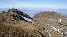 The main summit is often visited[2] for its long-range view of the coast, through a winding path from the south. The path crosses several barriers, from grassy at the bottom, to rocky at the top. The path disappears in the depression between the last barrier and the southern slope of the main ridge to the east of the southern pillar, to reappear as a lateral ledge in the slope below the eastern ridge.