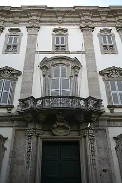 From an architectural point of view, one must note the peculiarity of the so to speak exuberant forms of the exterior façade, an anomaly when compared to Milanese buildings of the time, which betrays the Roman influence of Giovanni Ruggeri. In fact, it is no coincidence that the façade is reminiscent of the Late Roman Baroque, in which windows with mixtilinear frames and bulging balconies stand out. The façade also features two twin portals, said to be wanted by two brothers of the family for their mutual desire not to meet.