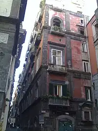 The Palazzo del Panormita is a Renaissance style palace in central Naples. It rises alongside the narrow via Nilo, near via Spaccanapoli, where it is called San Biagio dei Librai, diagonally from Santa Maria Assunta dei Pignatelli, adjacent to the Piazza del Nilo with the Nile God statue. It is south of Palazzo d’Afflitto and the Palazzo Spinelli di Laurino. The palace was initially commissioned prior to 1450 by Antonio Beccadelli, (1394–1471), called Il Panormita (poetic form meaning "The Palermitan"), who was a prominent Italian poet, canon lawyer, scholar, diplomat, and chronicler. It has since gone through many owners, including Giacomo Capece Galeota, a regent in the Tribunal of the Vicariate.