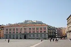 ![]() Palazzo della Prefettura from Piazza del Plebiscito, above in the far hill, the Certosa di San Martino. | |