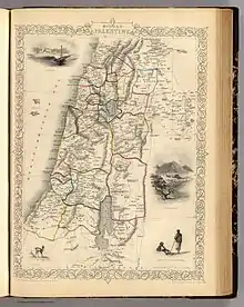 During the Byzantine period, the region of Palestine within Syria Palaestina was subdivided into Palaestina Prima and Secunda,[24] and an area of land including the Negev and Sinai became Palaestina Salutaris.[24] Following the Muslim conquest, place names that were in use by the Byzantine administration generally continued to be used in Arabic.[7][25] The use of the name "Palestine" became common in Early Modern English,[26] was used in English and Arabic during the Mutasarrifate of Jerusalem[27][28][lower-roman 7] and was revived as an official place name with the British Mandate for Palestine.