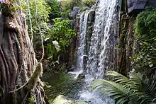The Jungle area is designed to resemble a tropical rainforest. It is the largest roof-top garden in Spain, and one of the largest in Europe.[3] A waterfall and several vaporizers create a humid atmosphere; a suitable microclimate for the Amazonian plants that grow there.