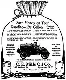 C. E. Mills Oil Company Advertisement and their new Palmer-Moore truck in June, 1913 - Syracuse Herald, June 22, 1913