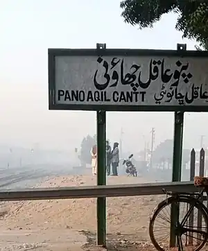 Pano Akil Railway Station (Urdu: پنوں عاقل ریلوے اسٹیشن, Sindhi: پنون عاقل ريلوي اسٽيشن) is located in Pano Akil, Sukkur district of Sindh province, Pakistan.[1]