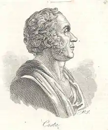Paolo Costa (13 June 1771, Ravenna – 20 December 1836, Bologna[1]) was an Italian poet, writer and philosopher.[2] The son of Domenico Costa and Lucrezia Ricciarelli, he began his studies in 1780 in Ravenna under modest teachers.[3] He then moved to Padua and studied there under Melchiorre Cesarotti and Simone Stratico. His studies were interrupted by the French invasion and occupation in 1797, during which he held government roles in both Ravenna and Bologna.[4]