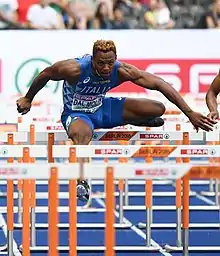 - ↑ He ran his PB 13.40, better crono of all athlets, in heats.