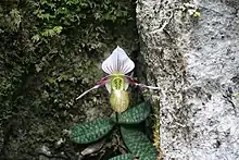 ![]() | Paphiopedilum canhii Aver. & O.Gruss 2010 | Laos | 600–800 metres (2,000–2,600 ft) |