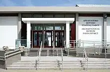 Paphos Archaeological Museum is a museum in Paphos, western Cyprus. It contains items ranging in age from the Neolithic to 1700 AD, with five rooms showcasing exhibits dating from the Neolithic era to the Middle Ages.[1] Most of the artefacts were unearthed in Palepafos (Kouklia), Nea Pafos (Paphos) and Marion-Arsinoe (Polis), and also from Pegeia, Kisonerga, Lempa, Pano Arodes, Salamiou, Akourdalia, Pomos, Kidasi, Geroskipou and other places.[2] The collection includes skeletal remains recovered from 31 tombs near the eastern seafront of the ancient city of Nea Pafos in 1980–3.[3]