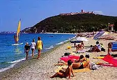 The beach of Skotina, with a view of the Castle of Platamon