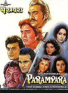 Parampara (transl. Tradition) is a 1993 Indian Hindi-language action drama film directed by Yash Chopra. It was the last time Chopra directed a film outside his production house Yash Raj Films. It features an ensemble cast of Sunil Dutt, Vinod Khanna, Aamir Khan, Saif Ali Khan, Neelam Kothari, Raveena Tandon, Ashwini Bhave, Ramya Krishna and Anupam Kher. It marked the Bollywood debuts for both Saif and Ramya.