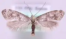 The wingspan is 13โ15 mm. Adults are on wing from June to July.[2]