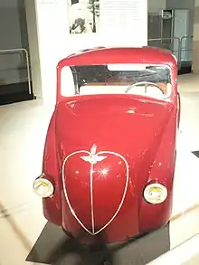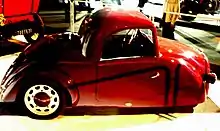 The company produced only electric cars. The first three-wheeler, the Paris-Rhône VPR, was presented to the public in the spring of 1941. It was just 2,500 mm (98.4 in) long and 1,200 mm (47.2 in) wide, weighing approximately 450 kg (992 lb) of which 210 kg was accounted for by six large batteries located under and behind the seat and mounted on a cradle that also accommodated the motor which drove the two rear wheels.[1] The front wheel was mounted on a motor-cycle style fork, but the mechanism was concealed from view by the body work. The electric motor appears to have been an existing unit from the company’s range, and delivered 2.5 hp at 2,300 rpm.[1] A top speed of 30 km/h (19 mph) and a range of approximately 65 kilometers (40 miles) were quoted.[1] The three-wheeled car had one bench seat suitable for two thin people and featured a simple cabriolet body.