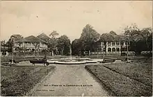 The square was originally named Place de la Cathédrale (roughly translated "Cathedral Square") dated back to the French colonial period.[1] In 1903, the colonial government erected a bronze statue of French Catholic priest Pigneau de Behaine and juvenile Prince Nguyễn Phúc Cảnh[2] in the center of the garden in front of the cathedral, and the square is thus known as place Pigneau de Béhaine. It was brought down in October 1945[3] leaving behind an empty statue pedestal. There was no statue on the site until 1959 under the First Republic of Vietnam, when a new statue of Our Lady of Peace (Vietnamese: Tượng Đức Bà Hòa Bình) was erected in honor of the Blessed Virgin Mary.[4] The square itself was called Hòa Bình Square (Vietnamese: Công trường Hòa Bình, literally "Peace Square"). In May 1964, the South Vietnamese government renamed it President John F. Kennedy Square (Vietnamese: Công trường Tổng thống John F. Kennedy) honoring the assassinated U.S. President.[5] After the Fall of Saigon, the square was renamed Công trường Công xã Paris (literally means "Paris Commune Square") by the Provisional Revolutionary Government.