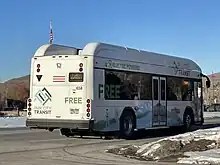Park City Transit started operations in 1975 when Park City Municipal contracted Lewis Stages to run the first free bus service.[2] In 1978, Park City enacted a transit tax and carried 165,000 passengers during its winter season. Four years later, in 1982, the first full-size buses enter Park City Transit's fleet, with UDOT later providing federal funding. In 1991, Park City Transit bought Gillig Phantoms to become compliant with the Americans with Disabilities Act of 1990. In 2000, the Old Town Transit Center (Park City Transit's main hub) broke ground. Later, in 2002. Park City Transit began bus service to Kimball Junction in order to meet demand for the 2002 Winter Olympics. In 2006, Summit County entered a joint agreement with Park City Transit to establish bus service further into the county.[3] UTA in 2011 launched the PC-SLC connect, connecting the Wasatch Back with Salt Lake City. In 2013, Park City Transit build an employee housing facility near Park City's Public Works Building (The headquarters of Park City Transit). During that same year, bus-only lanes were implemented on select streets in Snyderville. In 2017, Park City Transit ordered six Proterra Catalysts as part of its new 10 White "Electric Express" route.[4] In 2019, Park City's on-demand service began and passengers used Park City Transit to travel to destinations such as the Park City High School and Quinn's Junction. In 2020, Park City Transit received seven electric buses as part of an agreement with the Utah Transit Authority and the Utah Department of Transportation. 2021 saw Park City's partnership with Summit County on Public Transit end as High Valley Transit, a County-Endorsed program was created. The new transit authority was created to better-serve Summit and Wasatch counties.[5][6] 2022 saw Park City Transit procure seven new electric buses, while in 2023, the transit district started its transformation of 72 bus stops. Park City Transit also purchased two additional electric buses in the same year.[2]