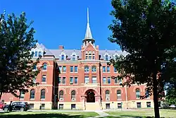 The historic building was constructed in 1901 with dormitory rooms for 200 students by the Norwegian Lutheran Synod to house the college. The four-story red brick and sandstone building, located on a hilltop overlooking the city, is in the Romanesque Revival style and was designed by Twin Cities architects Omeyer and Thori, who also designed educational buildings at St. Olaf College, courthouses in Windom and Ada, and the E.J. Webber house and Ole Hagen's Autograph Block in Fergus Falls. Its construction, supervised by contractor John Lauritzen, required all of the brick masons available in the area. The building was listed on the National Register of Historic Places in 1984.[1][2]