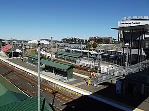 As part of the construction of the Gold Coast line, the standard gauge line was converted to dual gauge to allow these services to be segregated from Beenleigh and Cleveland services.[4][5] In 2000, a project commenced to add a fourth track and platform face between the existing lines, as well as add a platform face to the dual gauge line.[6]