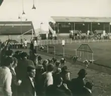 All three stadia, Wandsworth, Park Royal and Charlton Stadium were served by the Sunbury Kennels, which were located in a rural setting on Hanworth Road in Sunbury-on-Thames twelve miles from Park Royal Stadium. The kennels which were built in 1933 at the cost of £25,000 sat in fourteen acres and had accommodation for 600 greyhounds. In addition to the kennels there was a veterinary surgery including X-ray, Ultraviolet and Infrared ray apparatus, with the kennel staff and veterinary surgeon living on site. The self-contained exercising grounds included over three quarters of a mile of special track for road work.[3] The establishment had its own kitchens, bakery and isolation kennels (for sickness). One of the early kennel managers was Mr Cadwallader who organised 12 trainers (4 per stadium), each with their own stadium related section. Total staff numbered 80 and the kennels were seen as the equivalent for London Stadiums Ltd that the Hook Estate and Kennels was for the Greyhound Racing Association.[7]