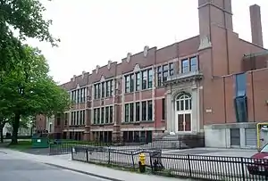 • Holy Family Catholic School, a TCDSB elementary school, a part of Holy Family Parish on Close Avenue. Founded in 1900, two years before the parish church and present school opened at their current location, Holy Family School was created out of Toronto's original west end parish and school of St. Helen's and was first in Parkdale's Masonic Hall on the south side of Queen Street near Dowling Ave. The school was served for many years by the Sisters of Loreto who commuted from their convent in Toronto's downtown. As population increased in the Parkdale area, the school was enlarged many times such that the standing remains of the original building are now obscured. In 2004 a community centre opened in the school newly built additional building, also at that time, Toronto's archbishop invited fathers of the Oratory of Saint Philip Neri in Montreal to come to Toronto to serve Holy Family Church and school. When the original Holy Family Church burned in 1997, the congregation worshipped in the school while funds were raised to build a new church.[22]