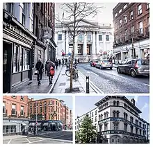 Clockwise from top: Dublin City Hall as seen from Parliament Street; Sunlight Chambers; Parliament Street at the junction of Dame Street and Cork Hill