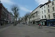 The Parliament Street Market opened in 1836, running every day, but with Saturday as the principal market day. It was the city's main market until 1955, when it completed a move to what is now the Shambles Market.[1][3] In 1989, a competition was held to redesign the street, and this led to it being largely pedestrianised, with a single carriageway on one side.[4] A variety of High Street shops now line the street, including a large branch of Marks and Spencers, and it is also used to host a variety of festivals and temporary markets.[5][6]